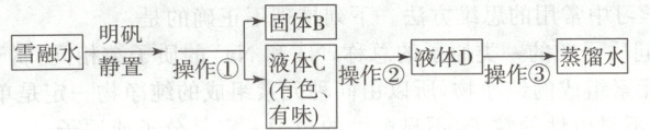 13. 2022年北京冬奥会的胜利举办得益于人工造雪技术的使用,冬奥会结束雪融化得到的水被重新利用,需要经过一系列净水操作,下图为净水流程,请回答以下问题: