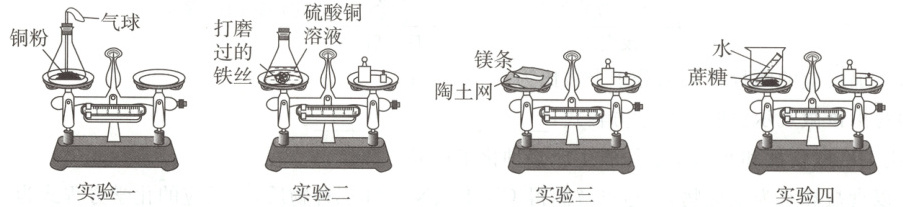 。(4)实验四的试剂混合前后质量关系为$m_前 = m_后$,小明同学认为该实验可验证质量守恒定律,小红同学认为不能,原因是