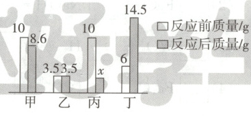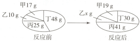 4.向一密闭容器中加入甲、乙、丙、丁四种物质,在一定条件下发生化学反应,测得反应前后各物质的质量如图所示。下列说法不正确的是 (