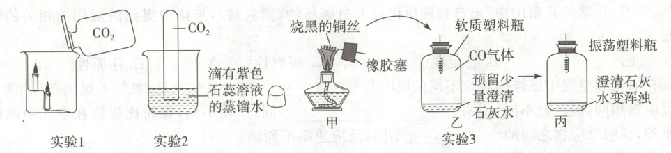 (1)实验1:观察到的实验现象是蜡烛自下而上依次熄灭。该实验说明$CO_2$具有的性质是
