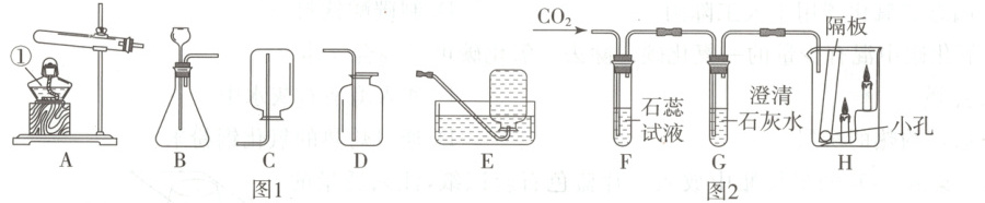 (填字母)。(4)某同学设计了如图2所示装置验证二氧化碳的性质,当通入二氧化碳一段时间后,F中的现象是