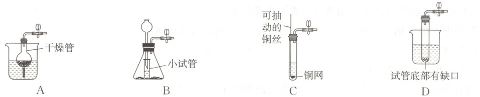 3.下列$\mathrm{CO_2}$的制备装置中,不能起到“能控制反应发生和停止”效果的是 (
