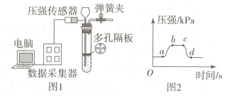 4.兴趣小组在实验室制取$\mathrm{CO_2}$的发生装置中连接压强传感器,如图1,测得实验过程中试管内气体压强变化情况如图2。下列说法不正确的是 (