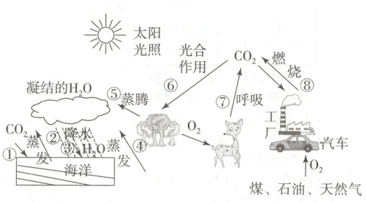 9.如图所示是自然界存在的三大重要循环——“水循环”“氧循环”和“碳循环”。用学科观点分析碳循环和氧循环,其中正确的是
