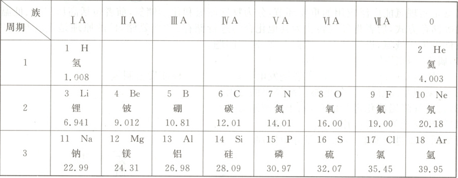 11. 电解水实验时,加入少量硫酸钠($Na_2SO_4$)可以增强水的导电性。结合元素周期表回答下列问题: