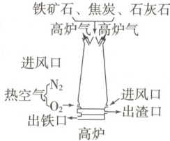 7.如图所示为工业上炼铁高炉内化学变化过程示意图,下列说法正确的是