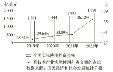 [典题1] 2019-2022年中国实际使用外资情况见下图。