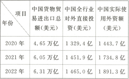 [典题2] 2023年2月,全球多个主要经济体公布2022年对华贸易年报,韩国、德国、英国和欧盟对华投资较上年增幅分别为64.2%、52.9%、40.7%和92.2%。结合材料及下表,可以推断出(
