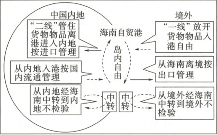 3. 2025年底前海南将实现全岛封关运作,即在海南全岛建成一个由海关监管的特殊区域。在这一特定区域内,就货物贸易、投资、服务贸易、税收等项目采取更加自由便利的政策,实现“一线放开、二线管住、岛内自由”货物进出口管理制度(如图)。不考虑其他因素,下列传导路径顺序正确的是(