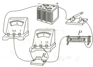 $\Omega$。(5)实验中,改变滑片$P$的位置,并记录相应数据,多次测量求$R_x$的平均值是为了