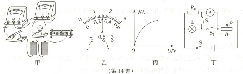 (5)另一实验小组的电流表损坏不能使用,小组成员找老师更换电流表。老师向他们指出:不用电流表,利用现有器材也能进行测量。测量电路如图丁,操作步骤如下: