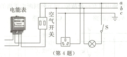 4. 对于如图所示的部分家庭电路,下列说法正确的是 (