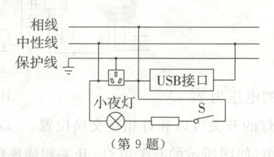 9.AC [解析]由电路图可知,有三条支路,一是三孔插座,二是USB接口,三是小夜灯、定值电阻和开关S。