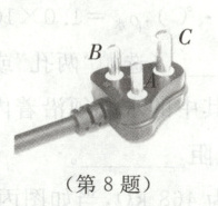 8.如图所示是生活中常见的三脚插头,下列说法中正确的是 (