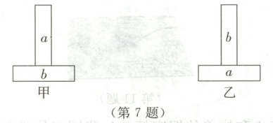 7. 有两根外形完全相同的钢棒 a 和 b;按图甲放置,手拿住 a 时,b 不会掉下来;按图乙放置,手拿住 b 时,a 会掉下来。这说明 (