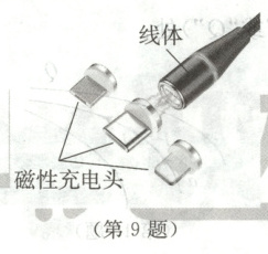9.(多选)如图所示是一款磁吸式数据线,含有磁铁的线体可以和不同型号的磁性充电头吸附对接,达到“一线多头”的使用效果。下列说法正确的是 (