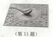 11. 如图是我国古代的四大发明之一的指南针(司南)。自由转动的司南,长柄由于受到
