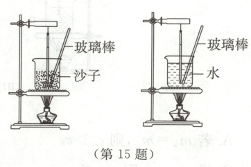 13.“早穿皮袄午穿纱,守着火炉吃西瓜”是对大漠气候的生动描写,而沿海地区昼夜温差则不大,这是由沙子与水的比热容不同造成的。已知沙子和水的比热容之比为1 : 4,沙子和水的密度之比为3 : 2。当相同体积的沙子和水吸收相同的热量时,它们升高的温度之比为