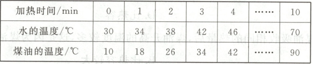 相同的水和煤油,分别倒入烧杯中,用电加热器加热,当它们吸收相同的热量时,通过比较升高的温度