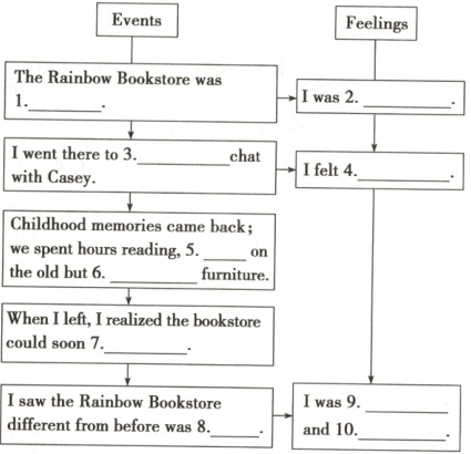 1. closing 2. heartbroken 3. have a long 4. sympathy 5. seated 6. comfortable 7. disappear 8. open 9. surprised 10. pleased