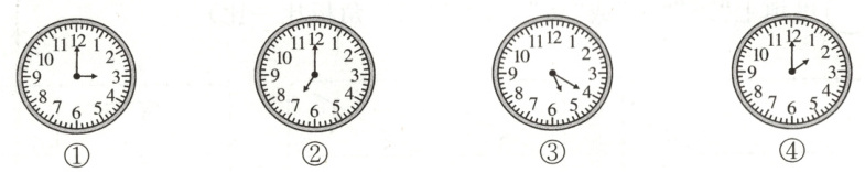 3. 把下面时针与分针所形成的最小角按从小到大的顺序排列。(填序号)