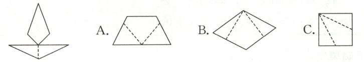 4. 将下列各纸片沿虚线剪开后,能拼成如左下图的是(