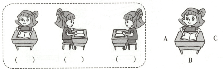 1. 下面的几幅图分别是在哪个位置看到的?把字母填在括号里。(6分)