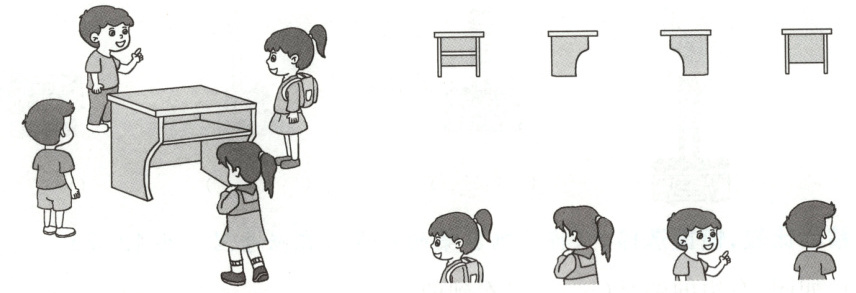 1. 四个小朋友看到的形状分别是怎样的?想一想,连一连。(12分)