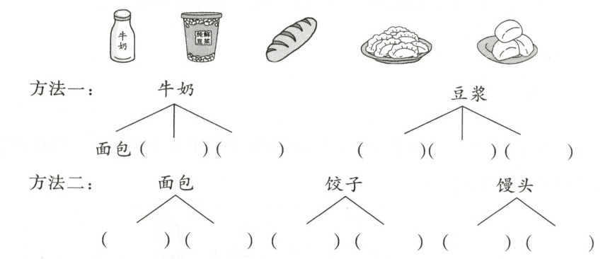 2. (1)小丽想选一种饮品和一种主食,可以怎样搭配?