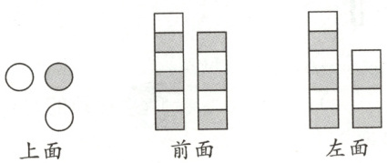 桌子上有一些叠起来的棋子,棋子分两种颜色。从上面、前面和左面三个方向观察这些棋子,看到的图形如图。你知道一共有多少颗棋子吗?