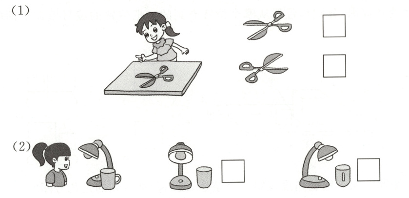 3. 下面哪幅图是图中的小朋友看到的?请在□里画“√”。(8分)