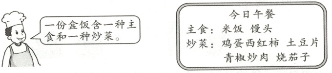 一共有多少种不同的配餐方法?想一想,把你搭配的想法写出来。
