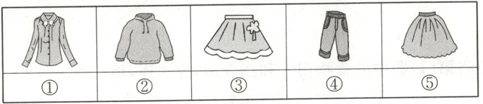 2. 方方要参加“十一”文艺演出,下面的服装是她准备要穿的。一共有多少种不同的搭配方法?
