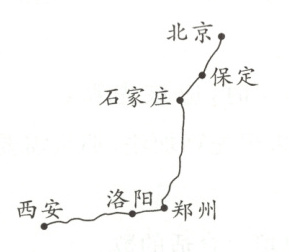 )之间的里程。(4分)(2)淘气一家从北京出发去洛阳旅游,行了567千米,请你用△在图中标出他们的大概位置,并计算出他们距离目的地还有多少千米。(5分)