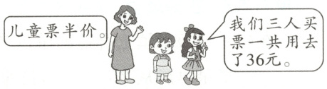 【解析】儿童票半价,即买1张成人票相当于买2张儿童票,因此36元相当于买了(2+1+1)张儿童票,每张儿童票是36÷4=9(元),每张成人票是9×2=18(元)。