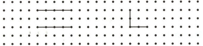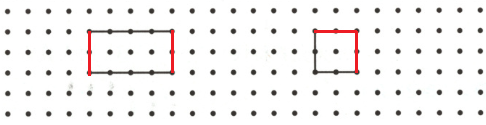 2. 在点子图中分别把长方形和正方形补充完整。(4分)
