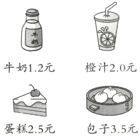 5. (问题解决)笑笑的早餐要选一种饮品搭配一种主食,费用正确的是(