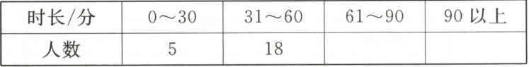 1. 三(1)班共51人,使用电子产品时长为61~90分的学生人数比时长为31~60分的多7人。请根据信息完成表格。(4分)