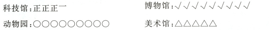 六、三(1)班要组织学生们外出研学,下面是三(1)班学生最想去的研学地点的记录情况。(每人只选一种)(共20分)