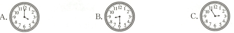 10. 观察下图中的钟表,钟面上分针与时针成锐角的是(