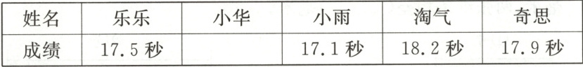 11. 在阳光小学运动会的100米决赛中,前五名运动员的成绩如下表。
