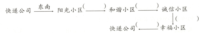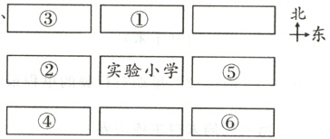 3.体育馆在实验小学的东面,市政中心在实验小学的东南方向。