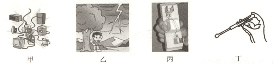 D.丁图中,使用测电笔时,手应接触笔后端的金属部分