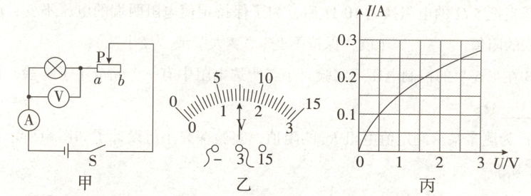 (2)按照电路图连接好实物电路后,电压表示数如图乙所示,为测量小灯泡的额定功率,应将滑动变阻器的滑片P向