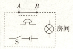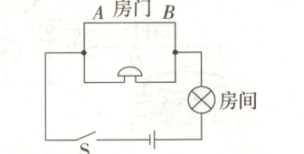 17. “创新”实验小组的同学要设计一个自动防盗报警电路。要求:晚间开关S闭合后,灯亮电铃不响;当房门被打开时,细导线AB被扯断,灯亮且电铃发声自动报警。请按要求用直线连接如图所示的电路元件。