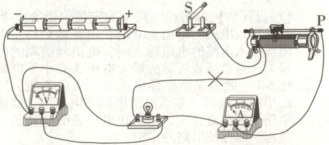 (1)图甲中有一处连接错误,请你在错误的导线上打“×”,用笔画线代替导线画出正确接法。