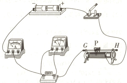解:定值电阻与滑动变阻器串联接入电路中;滑动变阻器按一上一下的原则串联在电路中,滑片P向右移动时电流表的示数变大,则右下方接线柱必须接入电路中;电源由2节干电池组成,电源电压为3V,所以电压表选用小测量范围,如下图所示。