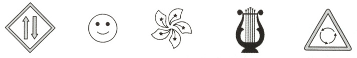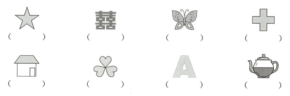 一、下面哪些图案是把纸对折剪下来的?在括号里画“√”。(16分)