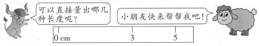 3.可以直接量出3种不同的长度,分别是3厘米、5厘米和2厘米。