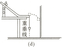 (4)丙同学将实验方案做了改变,如图(d)所示,他把桌子搬到竖直墙的附近,调整好仪器,使从斜槽轨道滚下的小球打在正对的墙上,把白纸和复写纸附在墙上,记录小球的落点。然后等间距地改变桌子与墙的距离,就可以得到多个落点。如果丙同学还有一把刻度尺,他是否可以计算出小球平抛时的初速度?并简要阐述理由。
